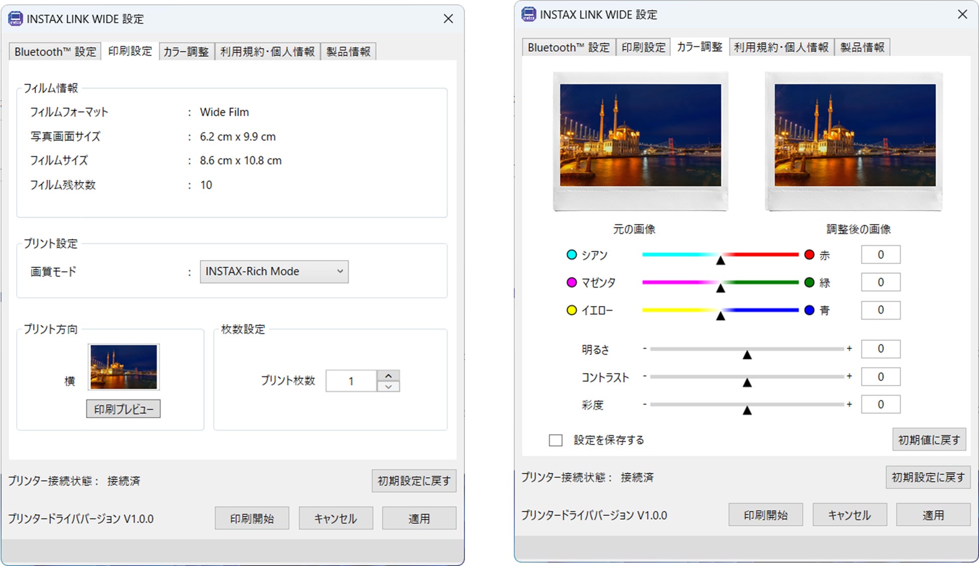今回提供開始する「Printer Driver」は、PCに撮影画像を保存して閲覧・編集しているカメラユーザー、PCでデジタルアートやゲームのスクリーンショットを楽しんでいる方がより手軽にチェキプリント™にできる「Link WIDE」用プリンタードライバーです。PCに「Printer Driver」をインストールすることで、いつもご使用いただいている画像編集ソフトや閲覧ソフトからそのまま画像をチェキプリント™にして楽しめます。