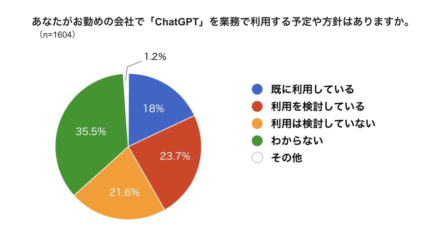 ・勤め先の会社での「ChatGPT」の利用方針は、約4割が利用に対して前向きで、そのうち約半数は既に利用していた