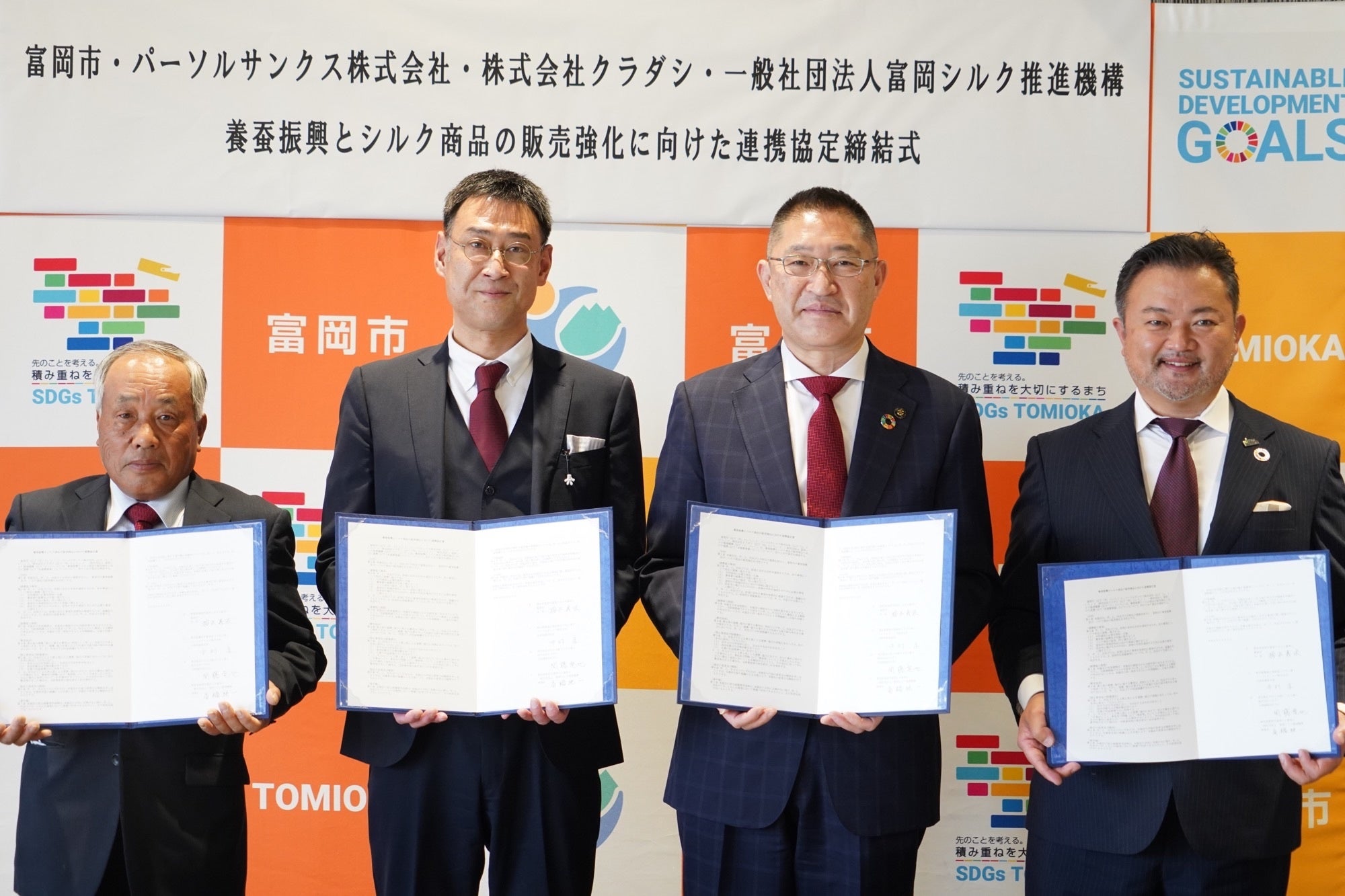 ~クラダシ、富岡市、パーソルサンクス株式会社、一般社団法人富岡シルク推進機構の4者が連携協定を締結~