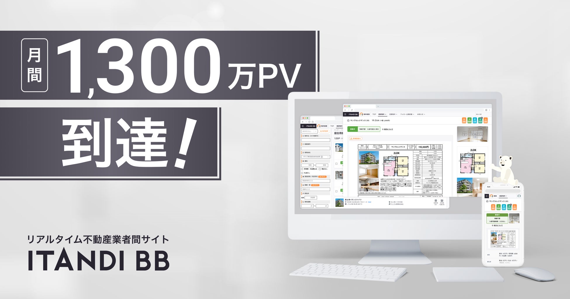 「ITANDI BB」は、仲介会社からのアクセスが2024年2⽉度単⽉で1,300万PVに到達いたしました。