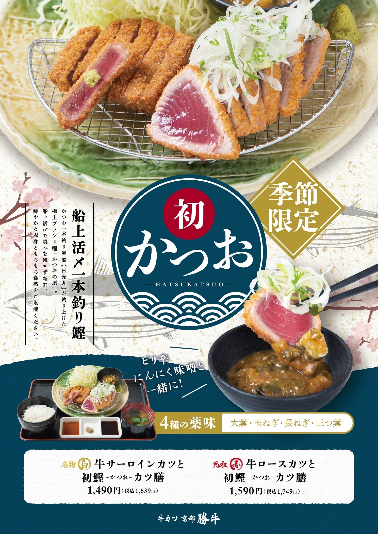 株式会社ゴリップ(本社:京都府京都市)が展開する「牛カツ京都勝牛」のシーズナルメニューとして毎回人気の“肉と海鮮が両方楽しめる相盛り膳シリーズ”から、春限定「牛カツと初鰹カツ膳」を2022年3月1日(火)より期間限定でご提供致します。