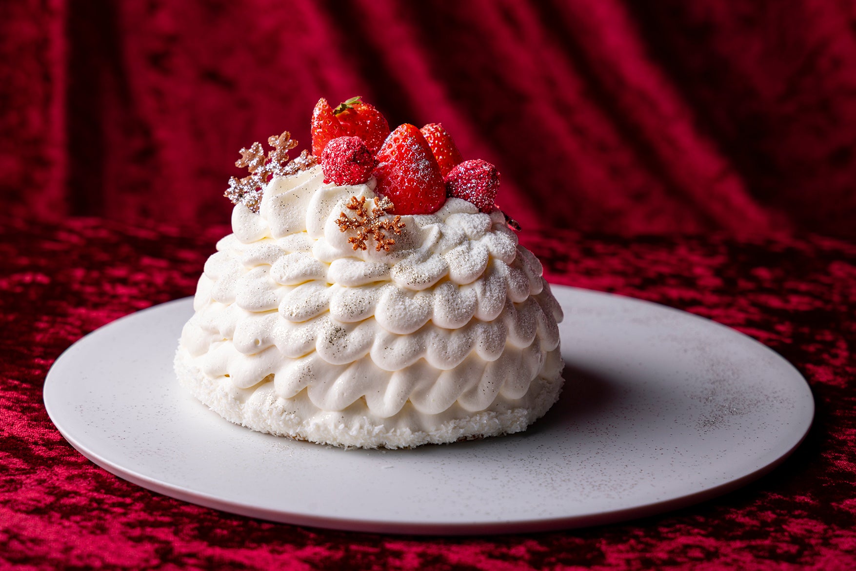ジューシーないちご、アクセントの自家製ミックスベリージャム、フロマージュブランを加えた程よい酸味のクリーム、そしてグランマニエ酒で香りづけしたふんわりエアリーなスポンジで仕上げました。2種類の生クリームをブレンドし、クリーミーなコクと後味の軽やかさを同時に叶えた、口溶けの良いリッチな味わいのショートケーキです。トップには、雪の結晶のチョコチュイルとフレッシュいちごを飾り、世代を問わず愛されるプレミアムな味わいのショートケーキをご用意しました。
