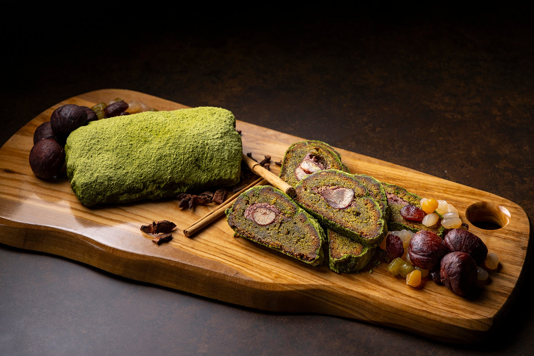 たっぷりの栗やかのこ豆、あんこを抹茶生地に練りこんだ、和スイーツ好きにおすすめの一品。