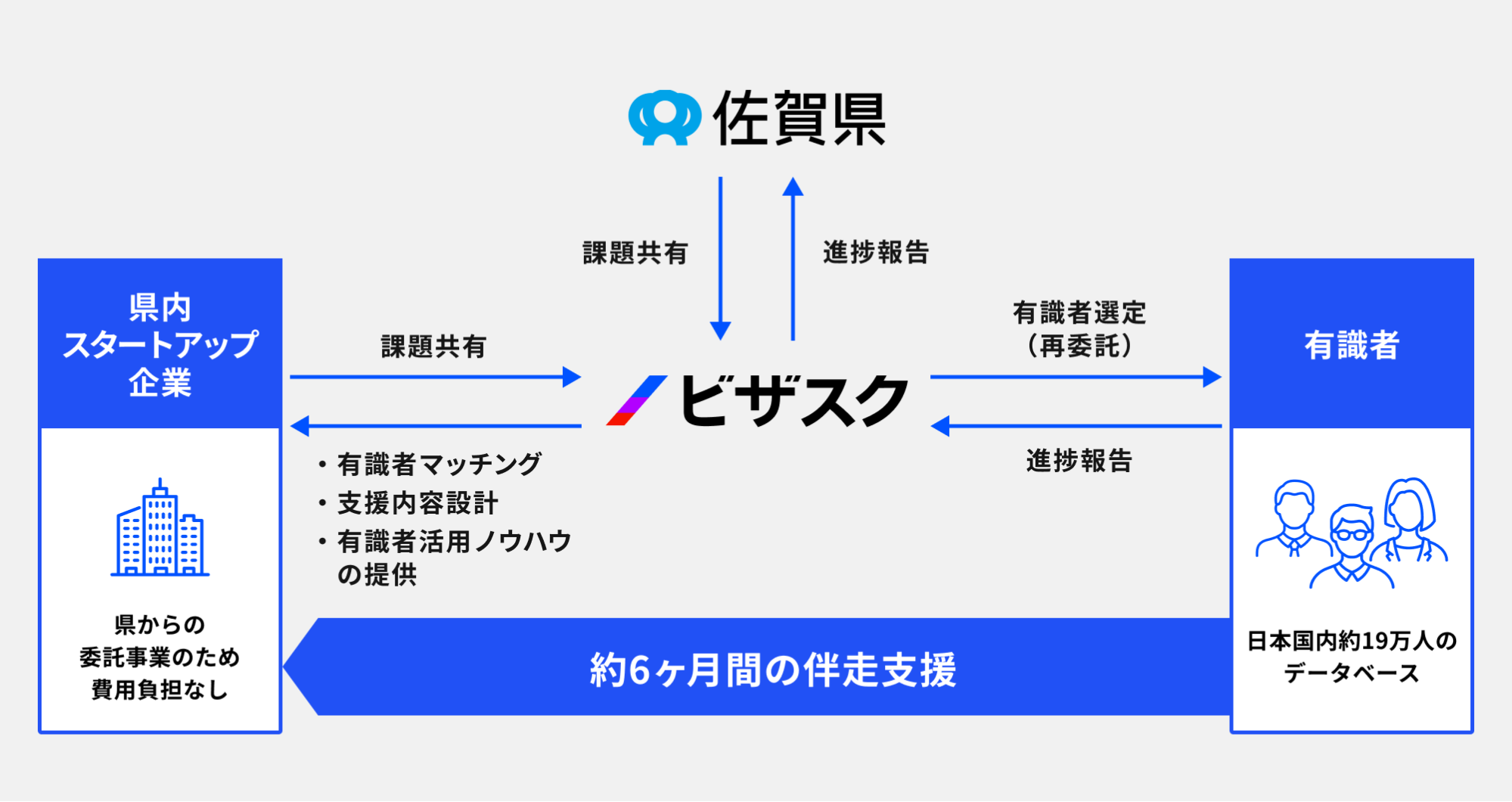 「Startup Assign SAGA」は、佐賀県がこれまで行ってきた個別指導プログラムに採択されたり、県が主催するビジネスプランコンテストで受賞したスタートアップ企業が主な対象です。デジタルマーケティングや資金調達、海外展開など、各企業が今後強化を目指す領域に応じて最適な有識者を「右腕人材」としてマッチングし、約6ヶ月の伴走支援を提供する取り組みです。県内スタートアップ企業の成長を促進すると共に、将来的な経営人材の創出を目指しています。なお、当社が県より受託している本事業においては、支援対象企業は費用負担なく、有識者の伴走支援を受けることができます。