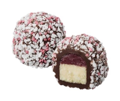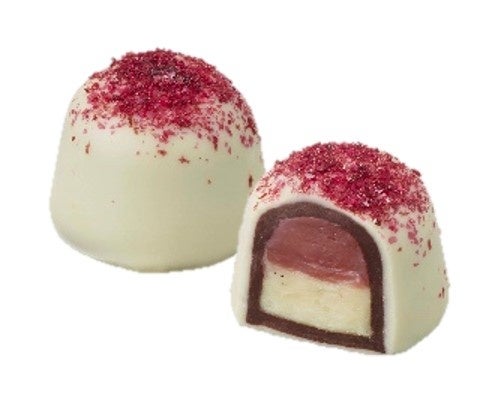 爽やかな酸味のラズベリーガナッシュにクリーミーなホワイトバニラガナッシュを重ね、ホワイトチョコレートで包み、ラズベリーパウダーでトッピングしました。濃厚なバニラの風味と甘酸っぱさが口の中で重なり合います。