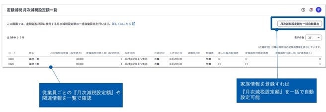 1.従業員毎の月次減税設定額を一括で自動算出・管理