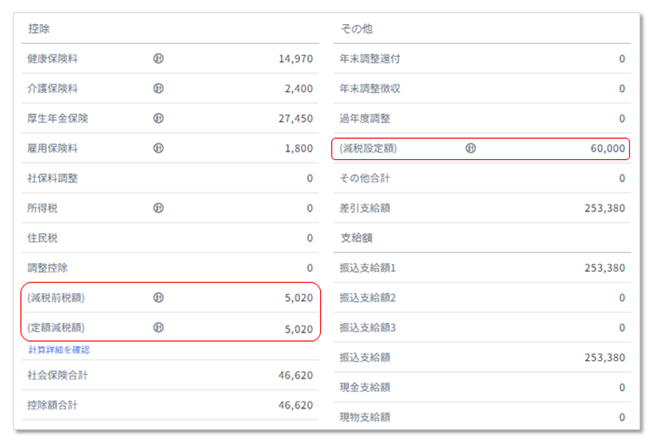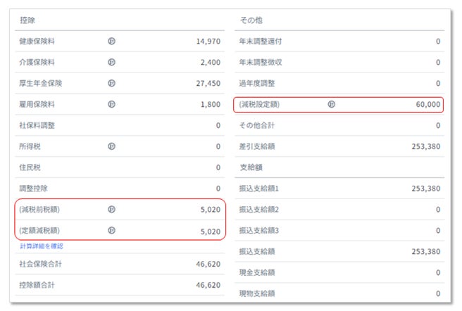 給与(賞与)明細書へ定額減税額を自動追加します。