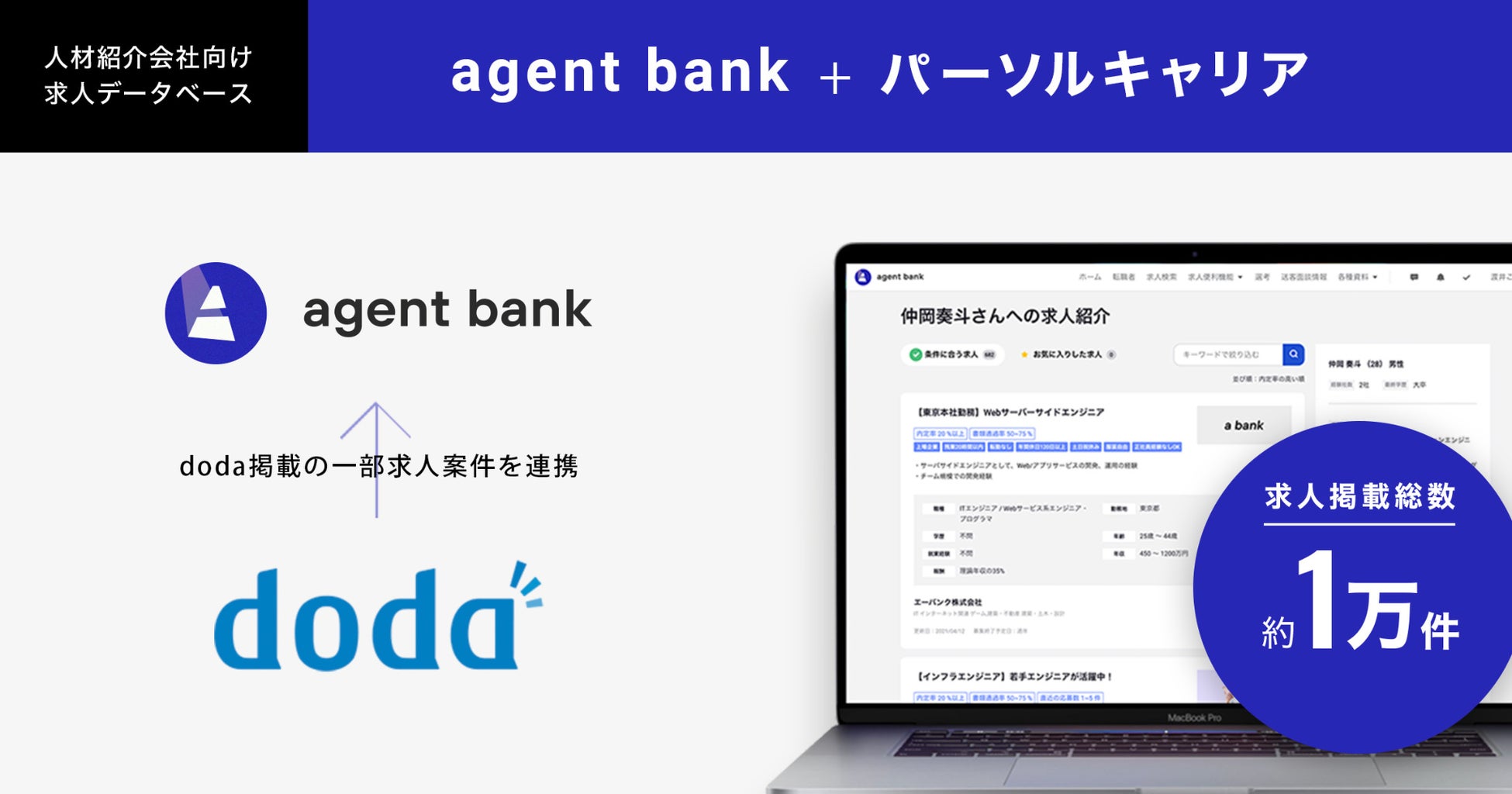 人材紹介会社向け求人データベース「agent bank」に、転職サービス「doda」の求人を掲載開始