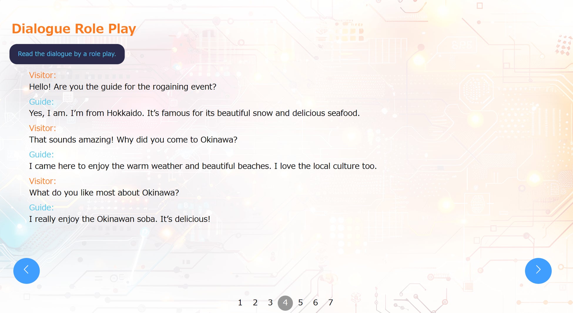 沖縄でフィールドワーク行うため、ロールプレイ形式で沖縄の文化や食について質問したり答えたりする練習を行います。