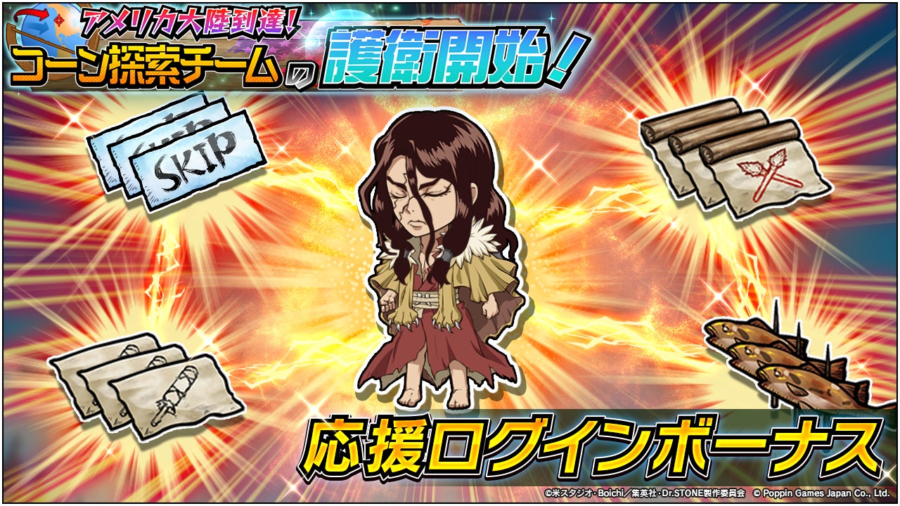 ポッピンゲームズジャパン株式会社は、AppStore/GooglePlayで配信中の『Dr.STONE バトルクラフト』にて新イベントを開催したことをお知らせいたします。
