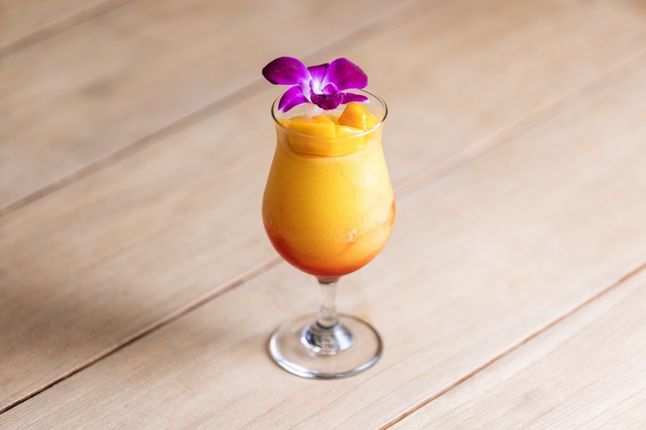 マンゴーカラーが映える、夏にぴったりのフローズンカクテル。マンゴーリキュールと宮崎マンゴーの濃厚な味わいを、ひんやりとお楽しみください。