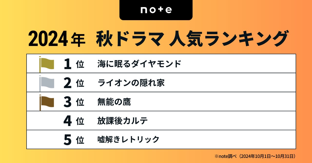 noteに投稿された、2024年10月期ドラマの感想記事を集計しました。集計結果をランキング形式で発表します。