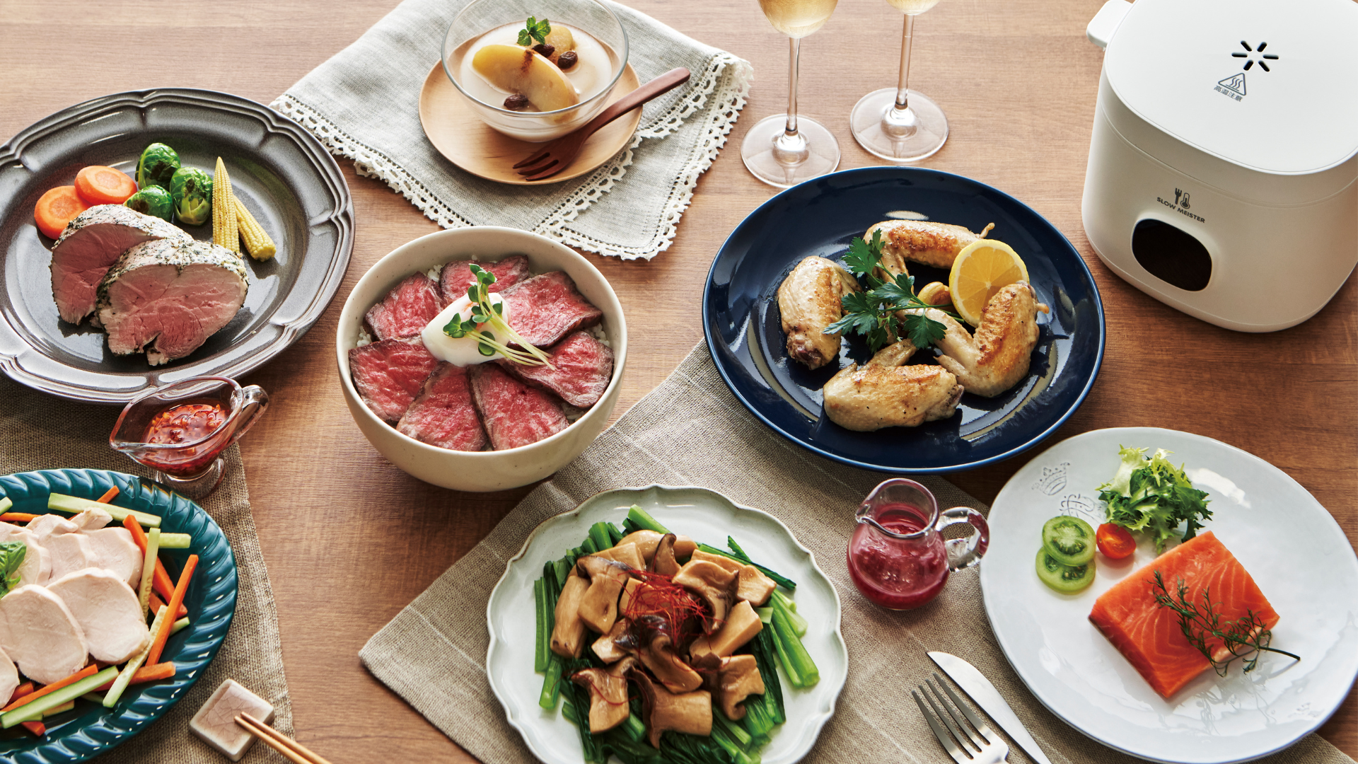 手軽で簡単に美味しい低温調理が完成します。ボタン二つで作れるサラダチキン・ローストビーフだけでなく、料理の幅が広がるオリジナル低温調理レシピブック付きで、温度&時間の設定機能を使えばレシピの幅はグンと広がります!