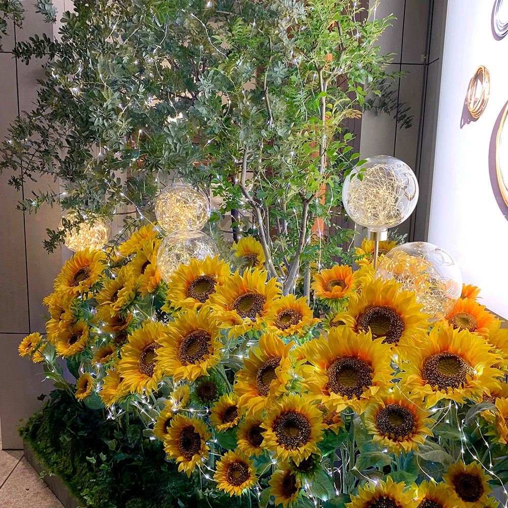 またフェア開催と同時に、鮮やかに咲き誇るひまわりたちがみなさまをお出迎え。日中は太陽に向かって咲く元気な花々の表情を、夜にはイルミネーションが広がる美しい空間をお楽しみいただけます。