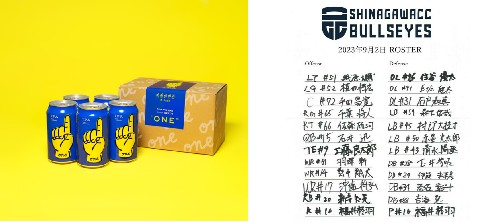 品川CC ブルザイズが刷新したユニフォームのブルーと、REVO BREWING「ONE」のブルーが類似していることからつながり、両者が共通のVisionを持つことから実現したコラボです。コラボ企画として「選手24名の直筆ロースター表」と「オリジナルコースター」を加えたプレミアムギフトパックを9月26日より提供開始します。
