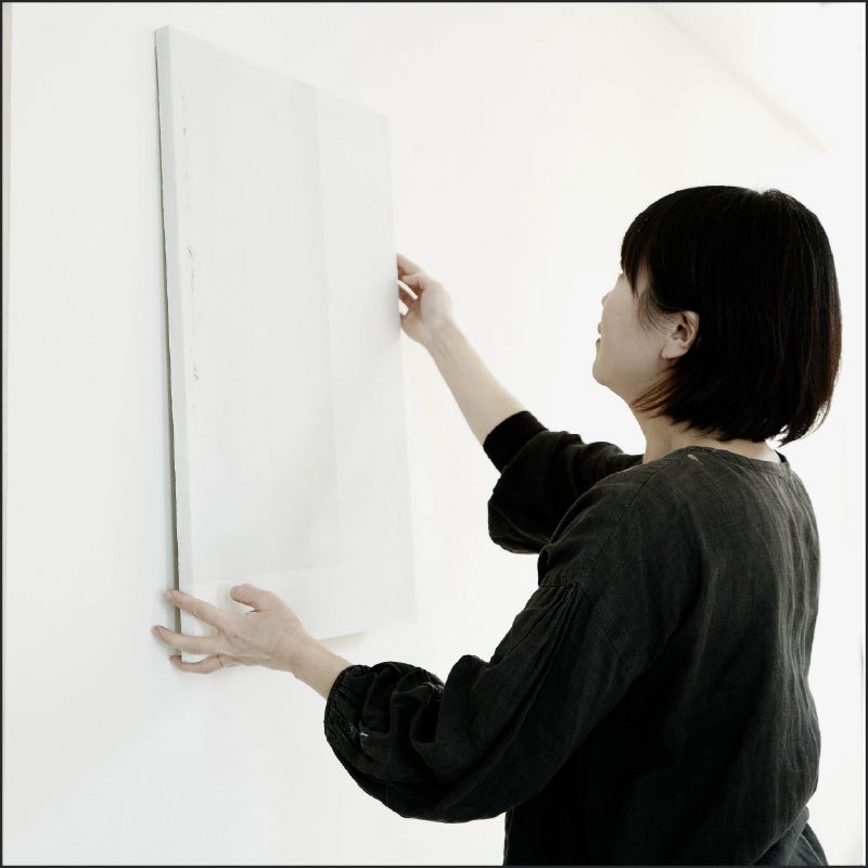 「何気ない日々の暮らしの中で自身の中に引き込まれた感覚を色彩、面によって支持体に落とし込みます。今回は時間の移ろいの中で生まれる木々、土、花の色彩。そんな色の構成を立つ場所や視点によって色を感じていただけましたら嬉しいです。」