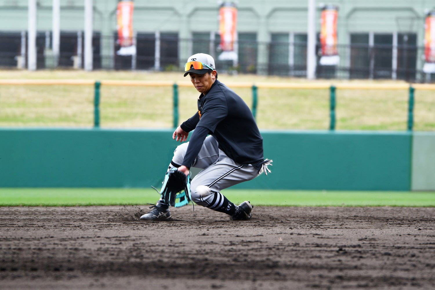 球際での前後左右の動きでも重心がブレにくく、スムーズにスローイング動作に移行できます。さまざまな守備動作にスピードをもって対応できるスパイクだと思います。