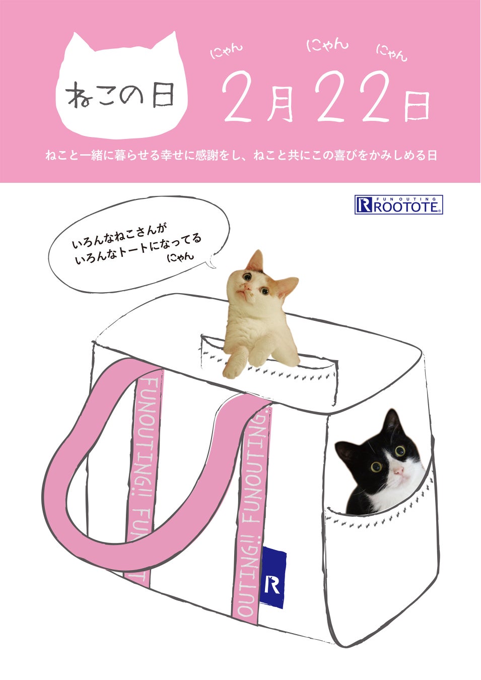 【にゃん・にゃん・にゃん。2月22日はねこの日です】20種類以上のねこモチーフトートが揃うROOTOTE。ねこ好きさんのための癒しのもふもふトートも、2月上旬から新発売!