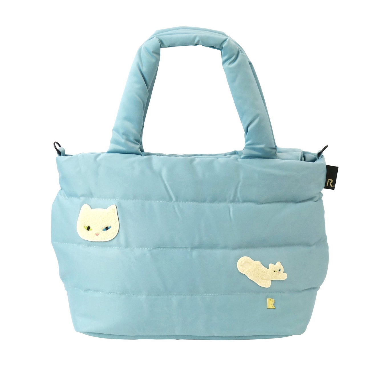 FE.デリ.cat-21 6,380円(9065 01 Lapis lazuli、02 Marigold、03 Old rose、04 Aquamarine)サイズ:W41×H24×D17cm 持ち手:45cm 素材:表地/ポリエステル、ポリウレタン(テフロン加工) 裏地/ポリエステル 持ち手/ポリエステル、ポリウレタン(テフロン加工) 本体中わた/ダウン、フェザー ポケット:外側1箇所(両サイドファスナー付)、内側4箇所(うちファスナー付1箇所) メイン開閉:ファスナー ※2月上旬発売予定