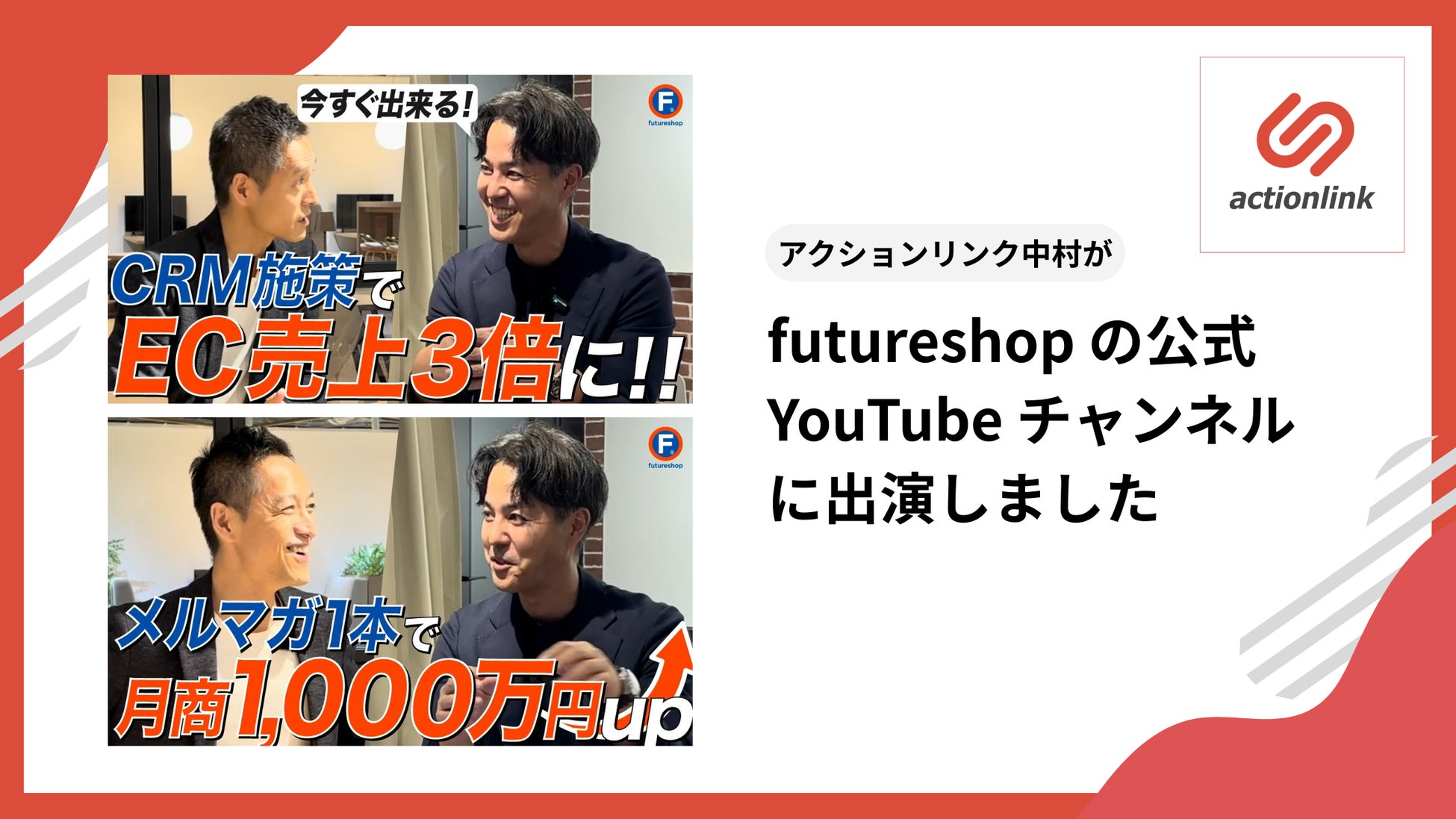 アクションリンクのプロダクト責任者・中村が、株式会社フューチャーショップが運営する YouTube チャンネル『Eコマースch【futureshop】』に出演し、EC事業者向けに CRM 活用のポイントを解説した2本の動画が公開されました。