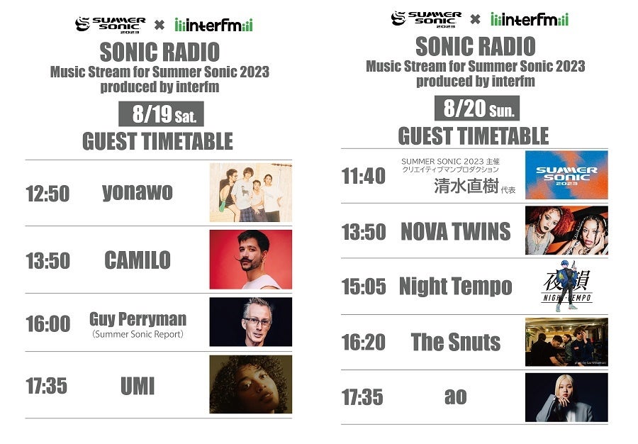 【SUMMER SONIC2023 × interfm】サマソニ会場で特別復活する「SONIC RADIO」の出演ゲストが決定!