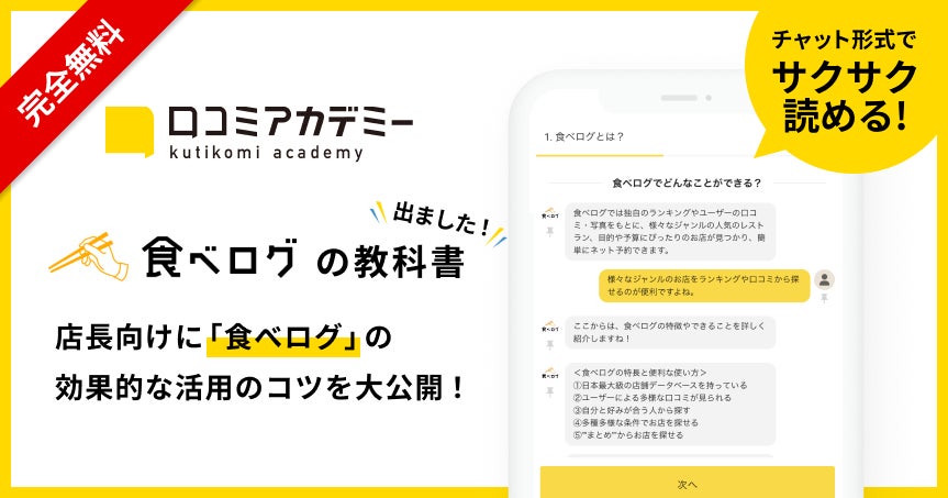 食べログを運営するカカクコム公式監修の元、店舗事業者様向けに食べログの活用方法について『無料』で提供開始します