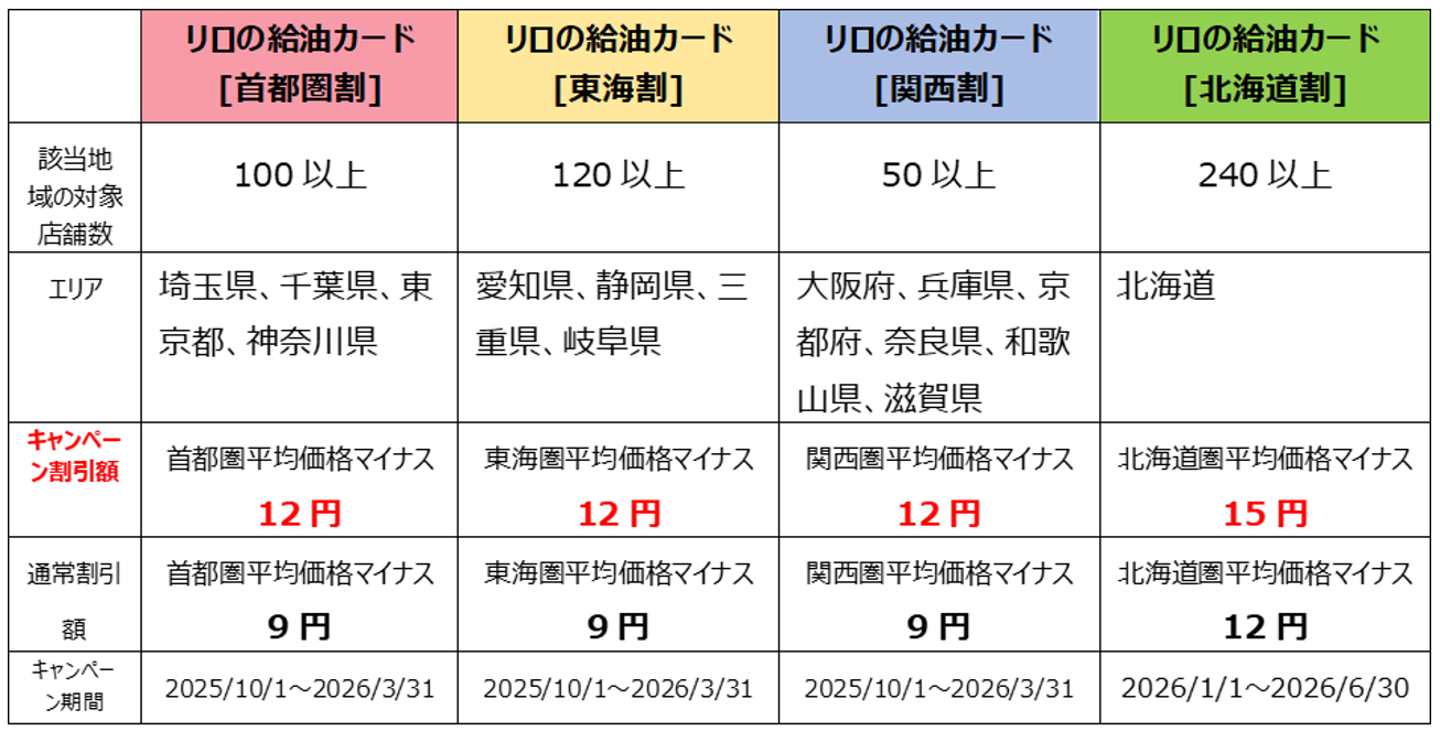■「リロの給油カード 地域割」概要