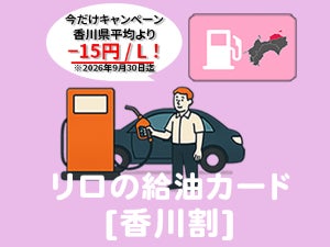 こうした背景を踏まえ、リロクラブでは2026年3月から「リロの給油カード」において、香川県の平均価格から1リットルあたり15円引きで給油いただける『香川割』を開催させました。香川にお住いの会員の皆さまの日常生活を、継続的に支援してまいります。
