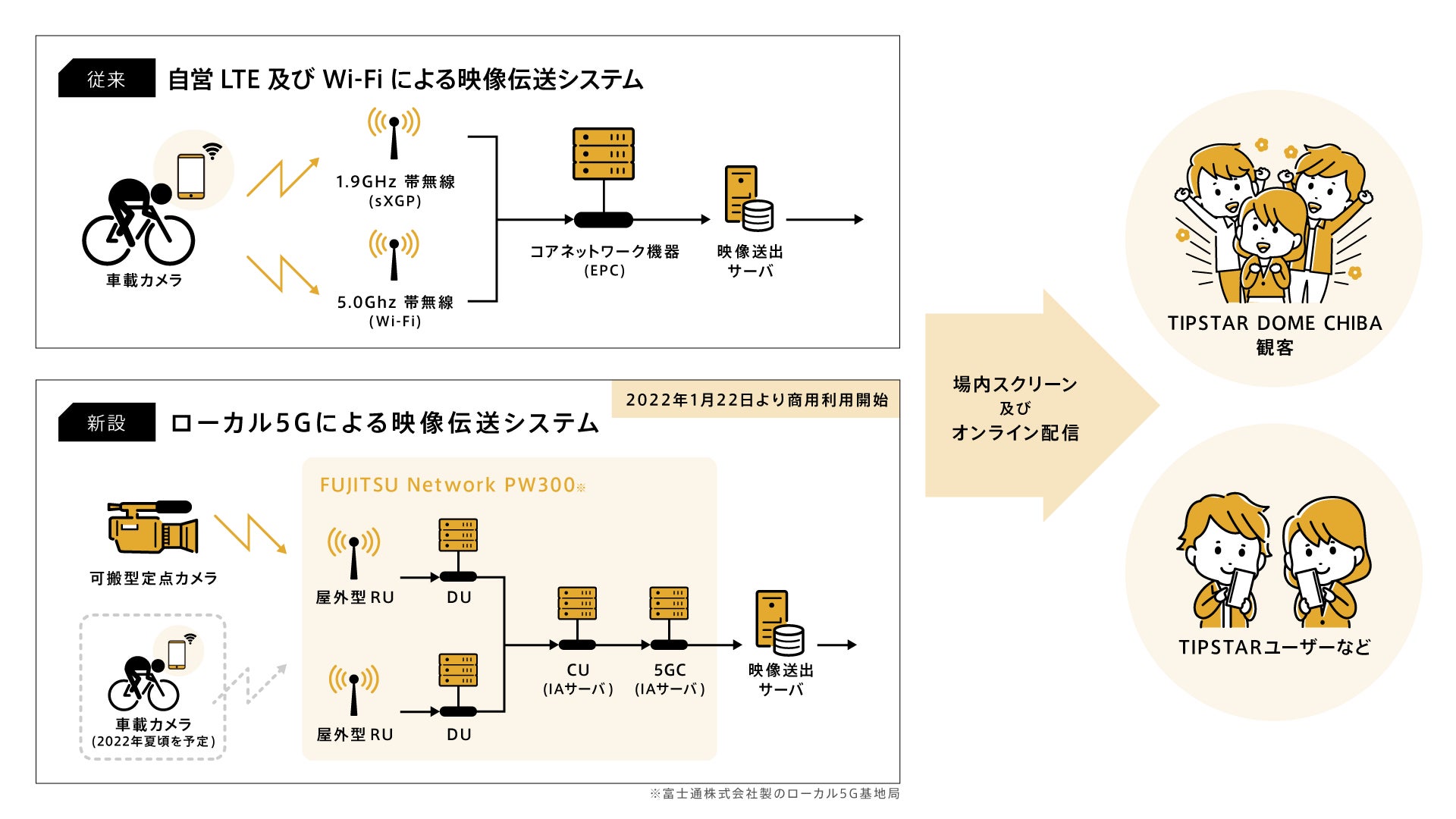 TIPSTAR DOME CHIBA内での商用利用については、可搬型定点カメラ映像の送出から運用を開始しますが、今後レースに出場する自転車に搭載されている車載カメラにおいても、ローカル5G対応を行う予定です。