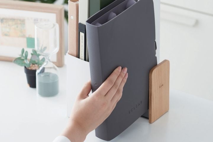 ・折りたたむと厚み約4cmのB5サイズになるので、本棚などにも収納でき、周りの目も気になりません。