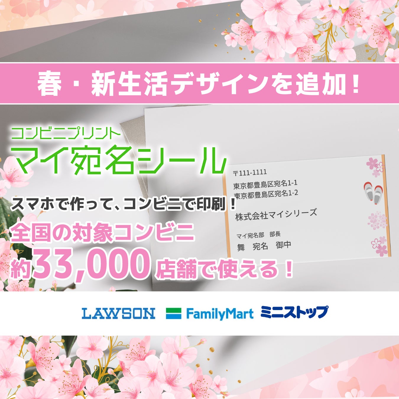 コンビニプリントサービス『マイ宛名シール』は、このたび春向け新デザインを追加し、サービスをリニューアルいたしました。