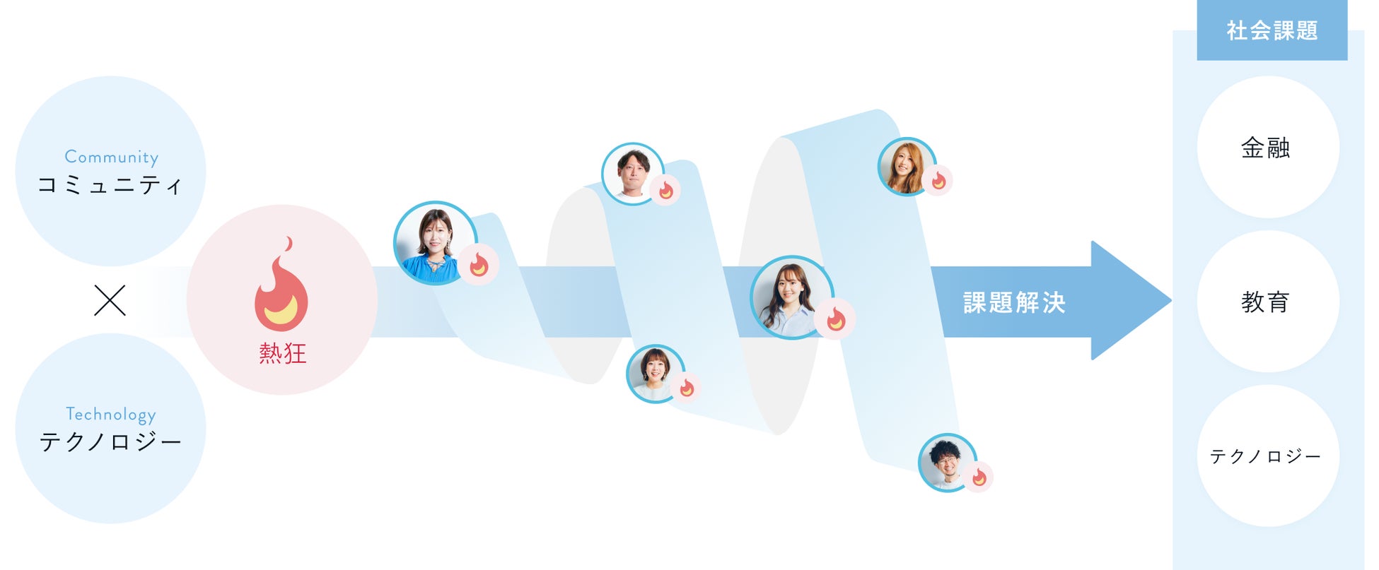今後、わたしたちはコミュニティ× テクノロジーによる「熱狂」で「社会課題」を解決し続ける会社です。「女性のキャリア課題」をはじめとして、「金融」「教育」「テクノロジー」など、様々な領域の不均衡の解決に取り組み続けてまいります。