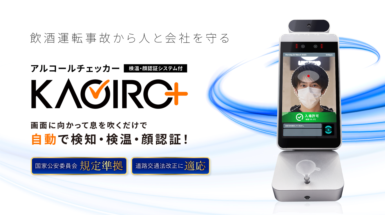 【2022年道路交通法改正に適応】アルコール検知×検温×顔認証が1台で⾏える「KAOIRO+(カオイロプラス)」