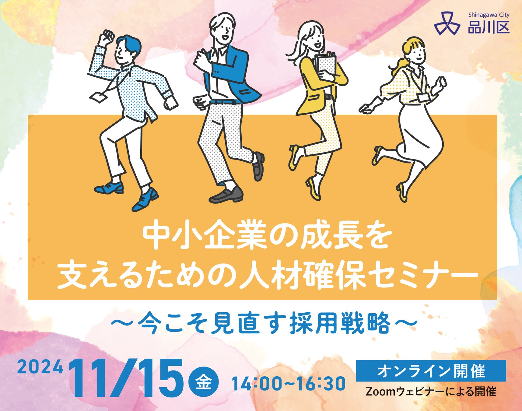 【品川区主催オンラインセミナー】採用・人材確保に課題をもつ中小企業に向けたセミナー『中小企業の成長を支えるための人材確保セミナー~今こそ見直す採用戦略~』を開催!