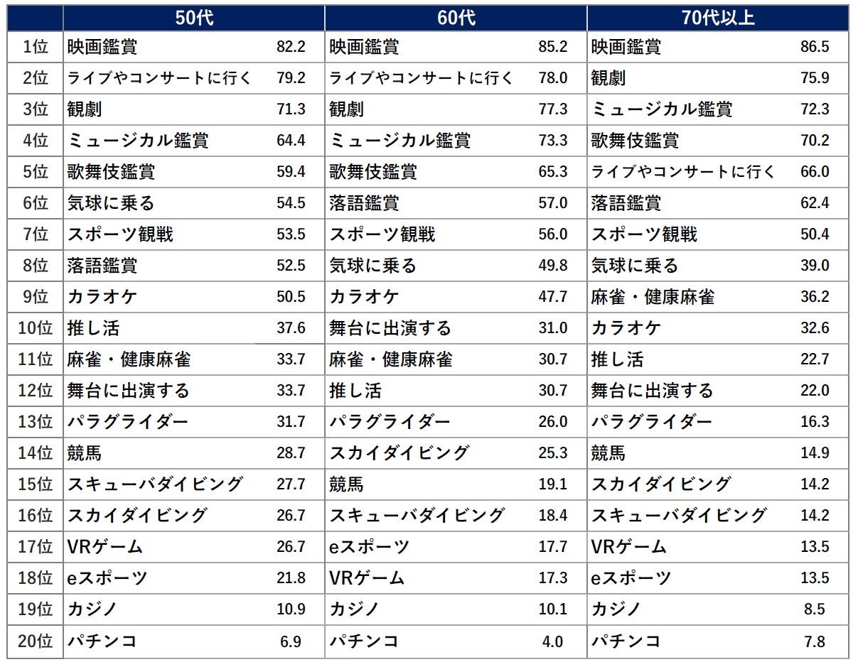 長く社会や家庭の役割を担ってきた世代だからこそ、今は「好きかどうか」で娯楽を選ぶ時期に入ったとも言えそうです。これまで忙しく過ごしてきた時間が少しほどけた今、「大きな挑戦」よりも「無理なく楽しめる新しい体験」が魅力に映っているのでしょう。実際、72.3%が挑戦したい娯楽があると答えました。挑戦とは必ずしも勇気のいる冒険ではなく、小さな非日常を生活に差し込むこと。そんな等身大の前向きさが、この世代の新しい余暇の姿なのかもしれません。