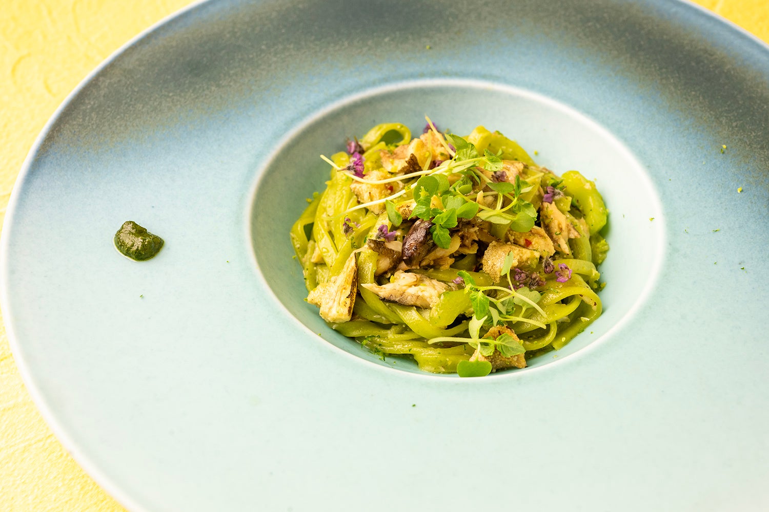 『セルバチコを練り込んだバヴェッティーネ 焼き鮎のアーリオ オーリオ』(ディナー)