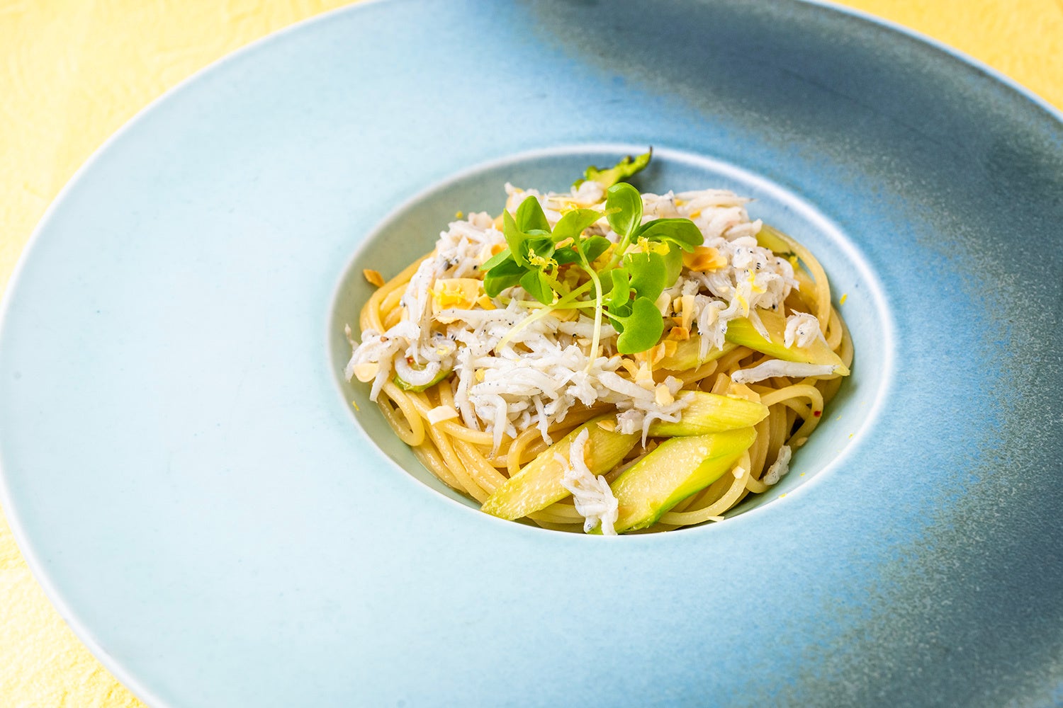 閖上産しらすの繊細な塩味を、シチリア仕立てのアーリオ オーリオで。海の恵みを感じる一皿。