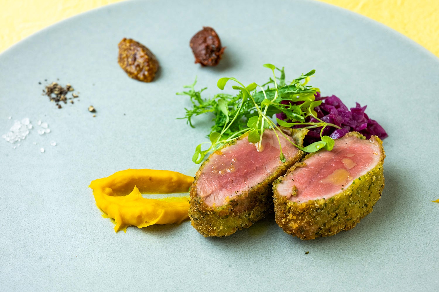 フィレ肉をコトレッタ仕立てに。ひと口ごとに広がる香ばしさと、軽やかな衣、柔らかい肉質をお楽しみください。