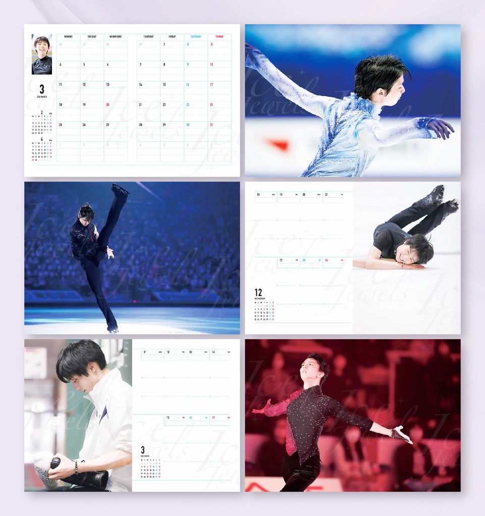 ダイアリーは2023年4月から2024年3月までの年度版。「月間カレンダー+週間スケジュール」という構成で、各見開きページに羽生選手のさまざまな写真が掲載されています。