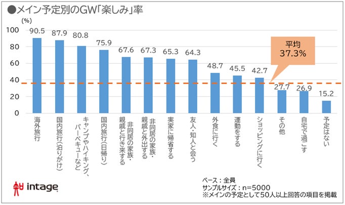 ・GWを楽しみにしている人は全体の37.3%。旅行やアウトドア活動予定者が高い傾向
