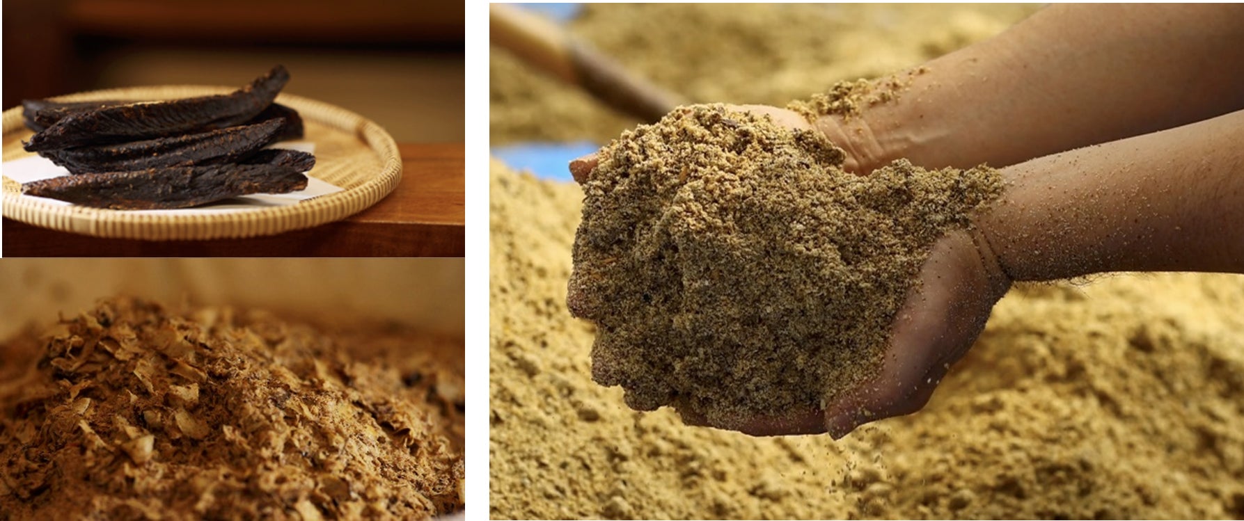 いちごポタジェでは、県内資源を活用したオリジナルの有機肥料による栽培にこだわっています。宮崎市内のお蕎麦屋さんからかつお節の出し殻や、お寿司やさんから昆布の出し殻をご提供いただき、有機肥料として活用しております。さらに、竹の発酵肥料や米ぬかといった未利用資源を活用することで、地域循環に取り組んでおります。