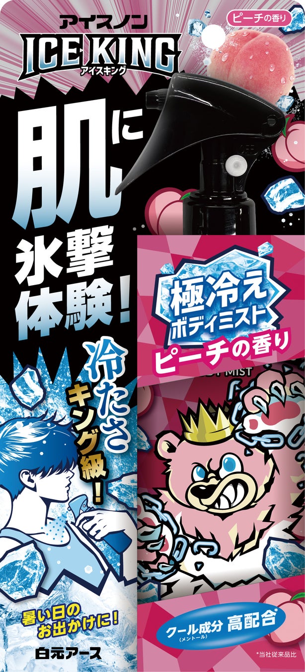 白元アース株式会社(本社:東京都足立区、社長:吉村一人)は、肌に直接スプレーするだけで圧倒的なクール感を全身で実感できるボディ用化粧水『アイスノン ICE KING 極冷えボディミスト』に、新香調「ピーチの香り/同 つめかえ用 140mL」を3月10日より新発売いたします。