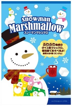 ダイス型のマシュマロを雪だるまデザインのパッケージで包装したマシュマロ2品です。