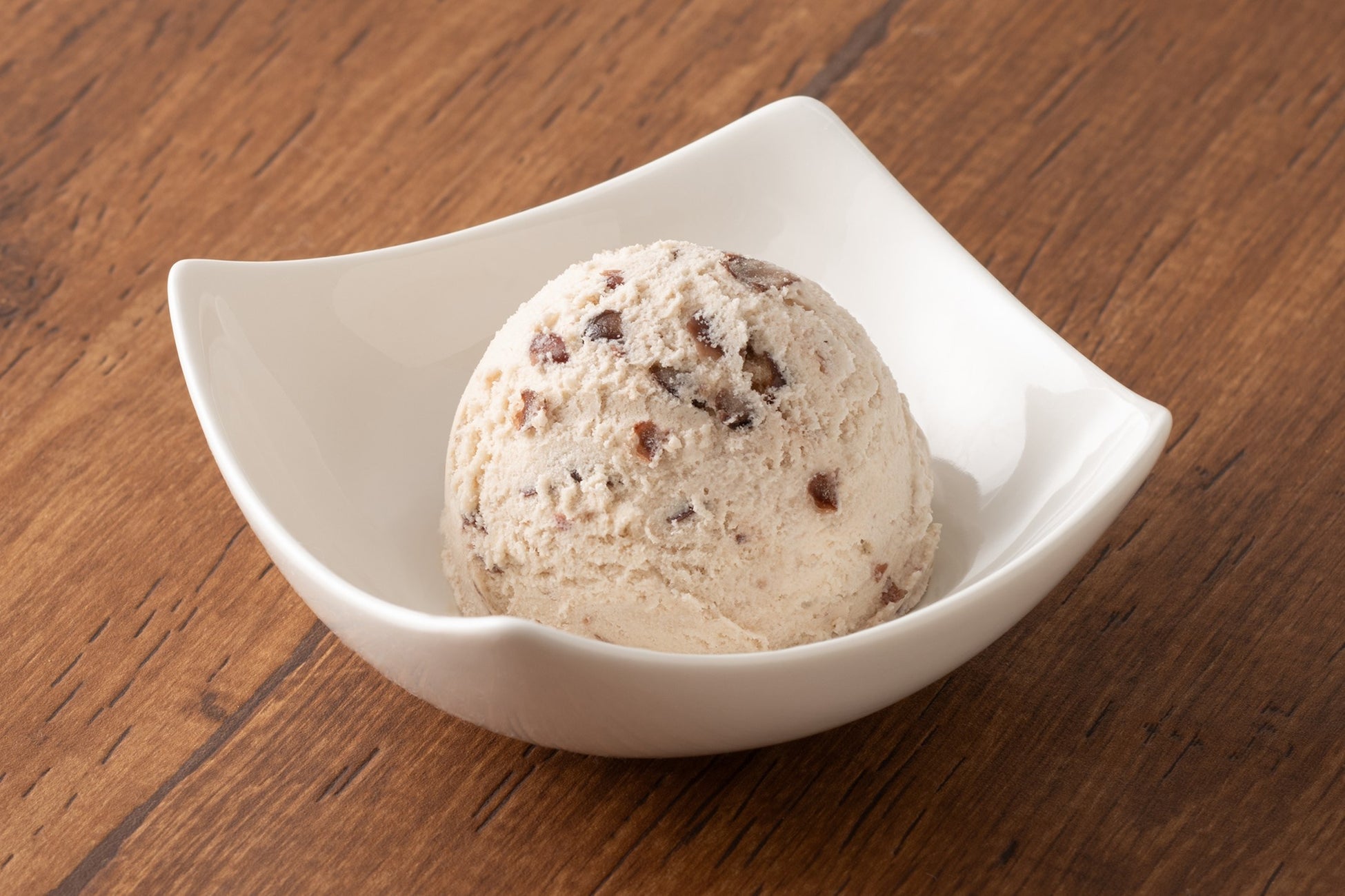 北海道産乳製品をベースに、北海道産小豆を使用したこしあんを配合した和風みるくアイス。北海道産小豆のつぶあんと北海道産大納言小豆の甘納豆を混ぜ込むことで、あずきの香りや食感を楽しめます。