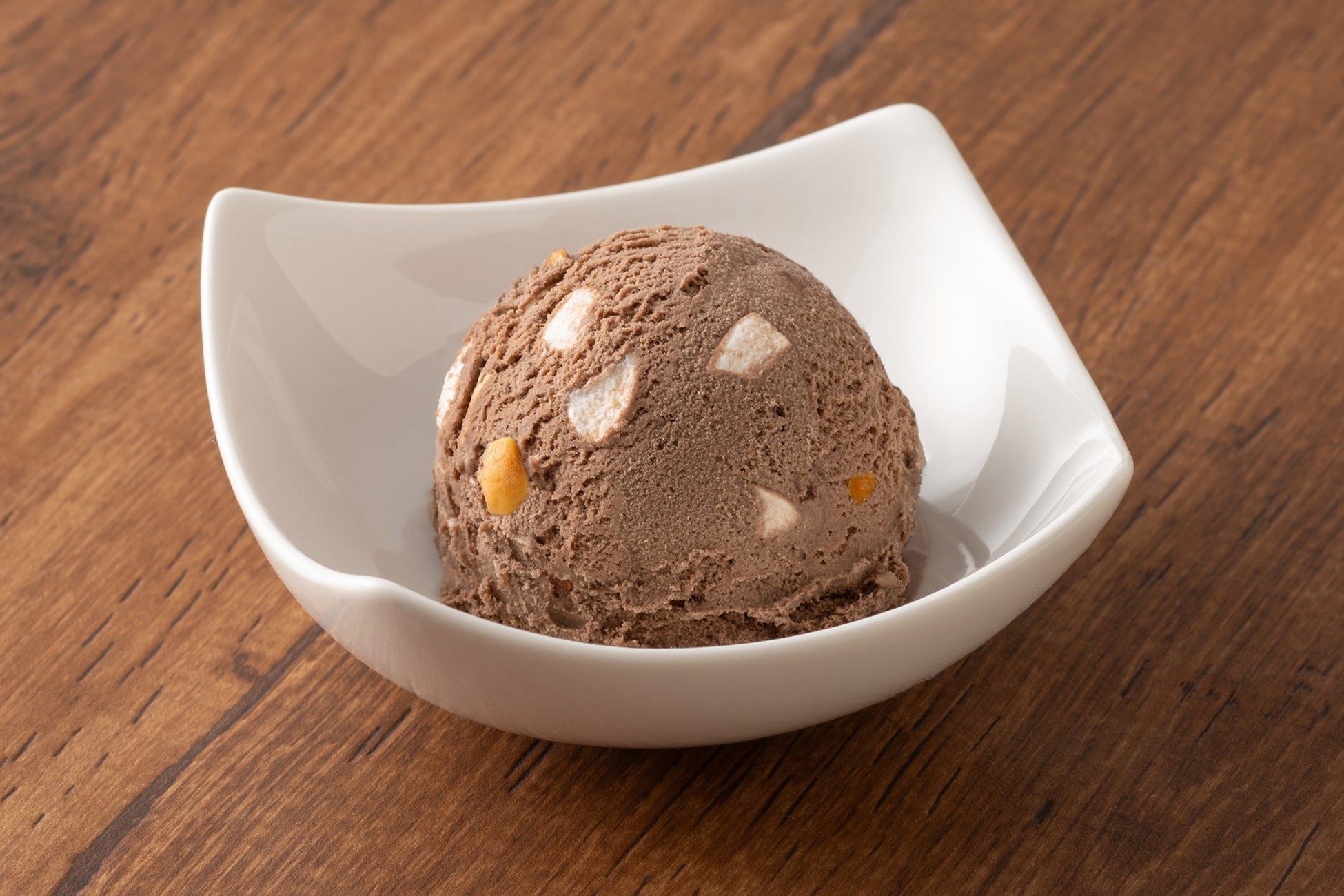 フランス産ココアパウダーを配合し、カラメルシロップを加えて苦みとコクのある味わいのチョコアイス。マシュマロとアーモンドダイスを混ぜ込むことで、ごろごろとした食感の変化が楽しめます。