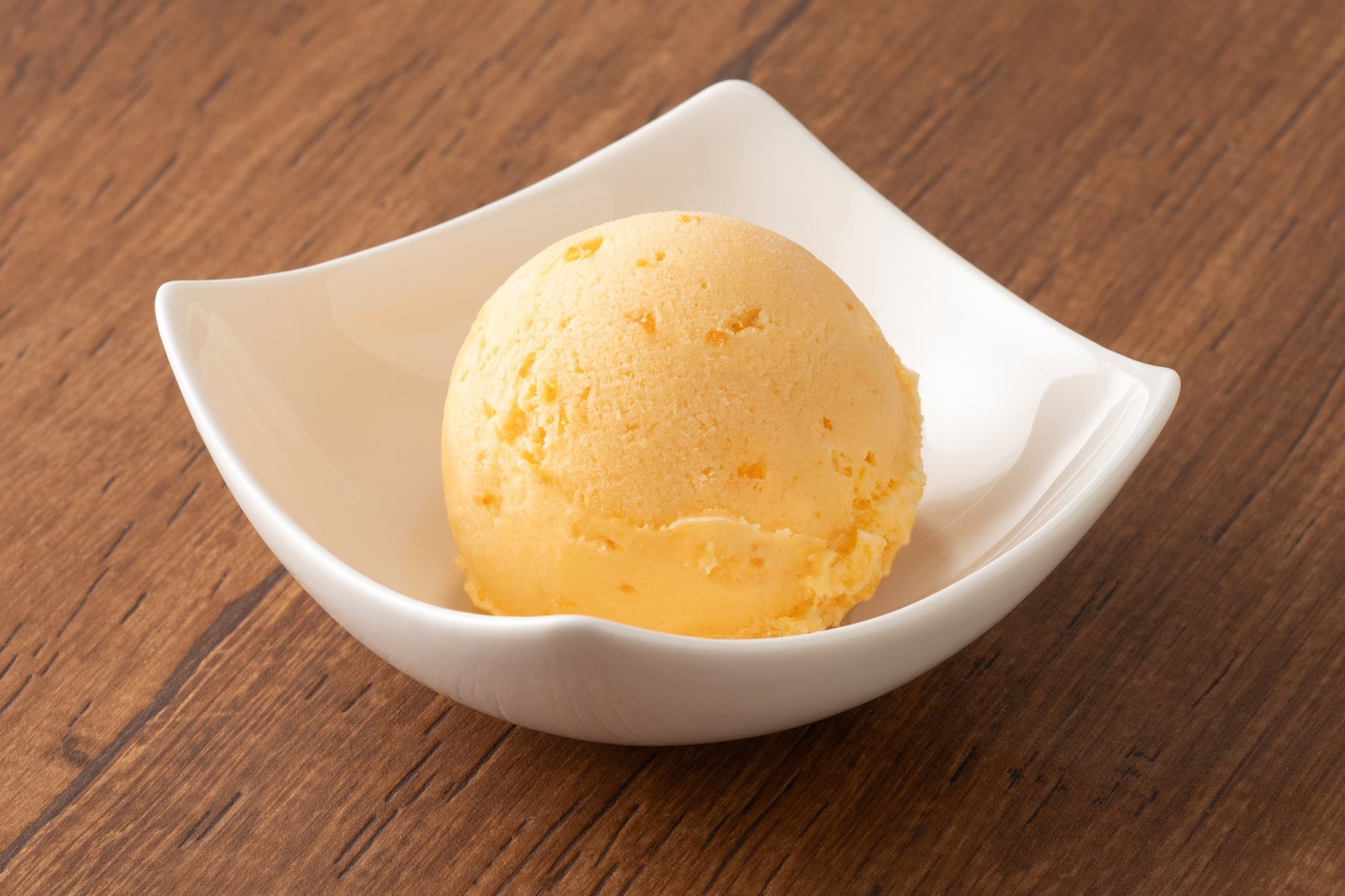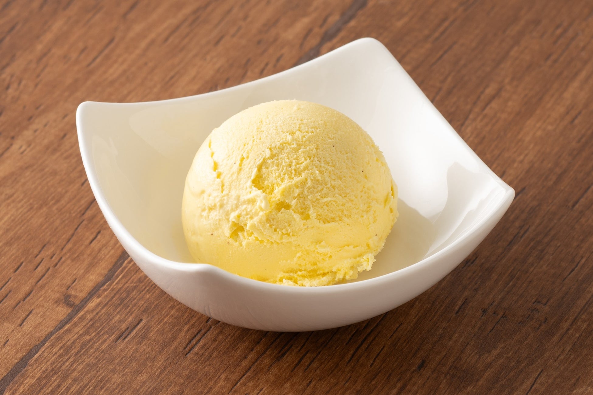 北海道豊富町産の生クリームとバター、北海道産の牛乳をベースに卵のコクがしっかりと感じられる贅沢な味わい。天然バニラ香料とバニラペーストを配合し、バニラの芳醇な香りが広がります。
