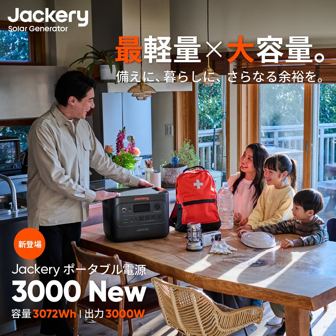 1台で、災害時の停電を3日間乗り切り、高出力家電を複数同時に動かせる!3000Whクラスで最軽量・最小の大容量ポータブル電源「Jackery ポータブル電源 3000 New」を3月4日(火)発売開始