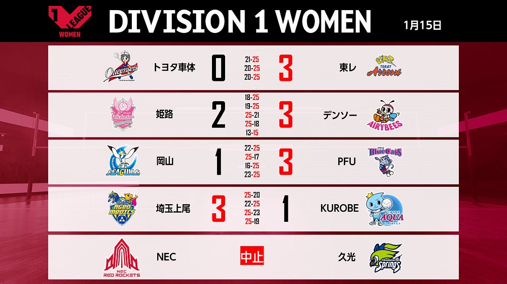 アウェイゲームを制したPFU 対 岡山 1月15日 第1セット