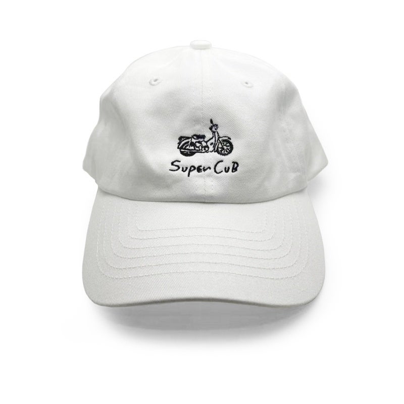 コットン100%の爽やかな素材に、すこしゆるっとしたHONDA スーパーカブのイラストをさり気ないワンポイント刺繍で仕上げており、大人の方でもオシャレにかぶることができます。(ユニセックス)