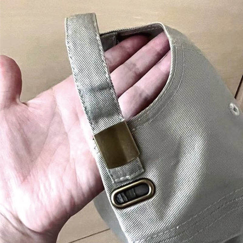 頭の大きな方、ゆったりかぶりたい方は、後ろ側のクリップを緩めてベルトをホールから出していただいても